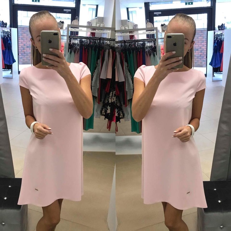 Vabalt langev A-lõikeline kleit,tagant kinnitub lukuga.
