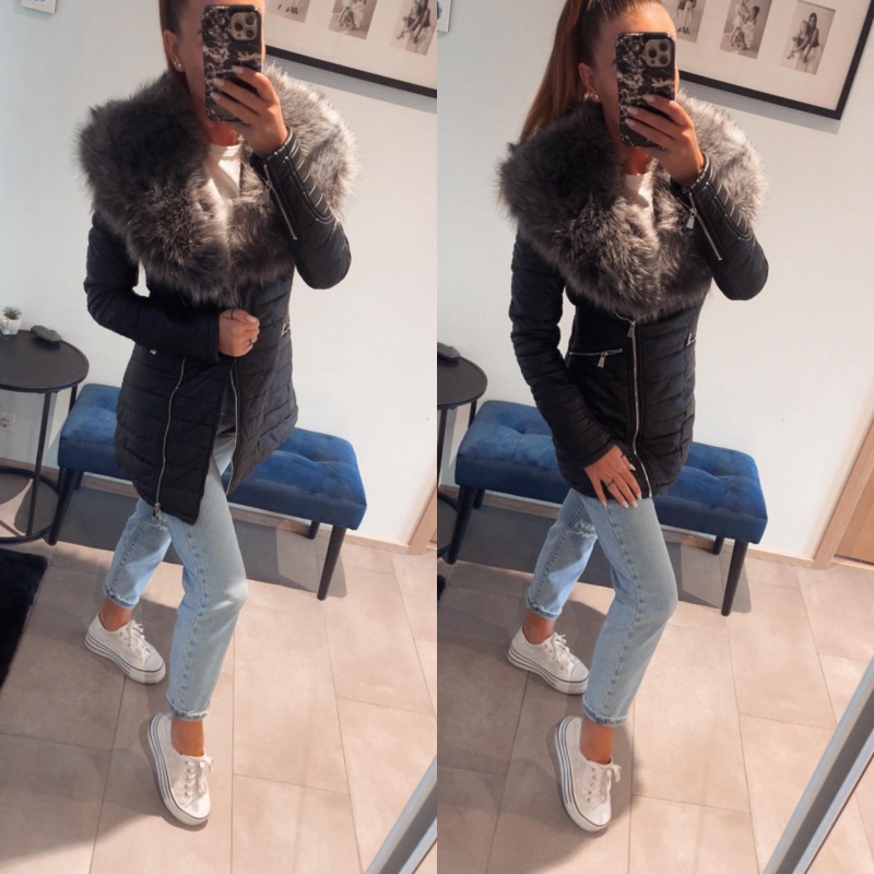 Must nahkne mantel halli karvaga( karva on võimalik eemaldada)