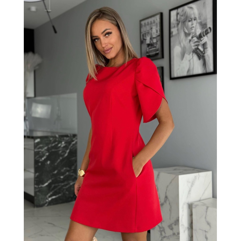 Punane taskutega kleit.