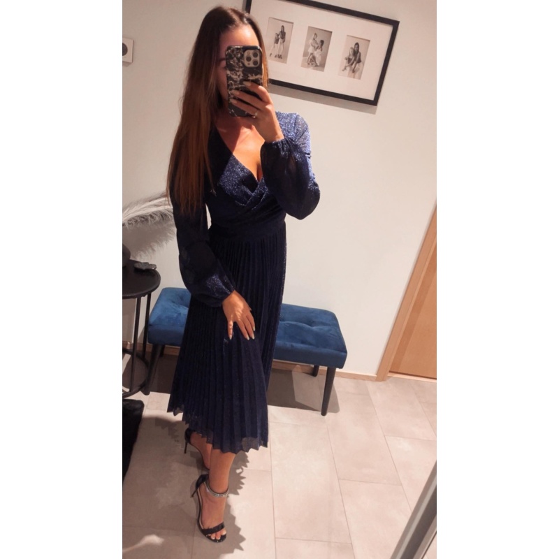 Ilus kergelt sädelusega pilseerkleit. Kleidil on v-kaelus ja pikad varrukad.