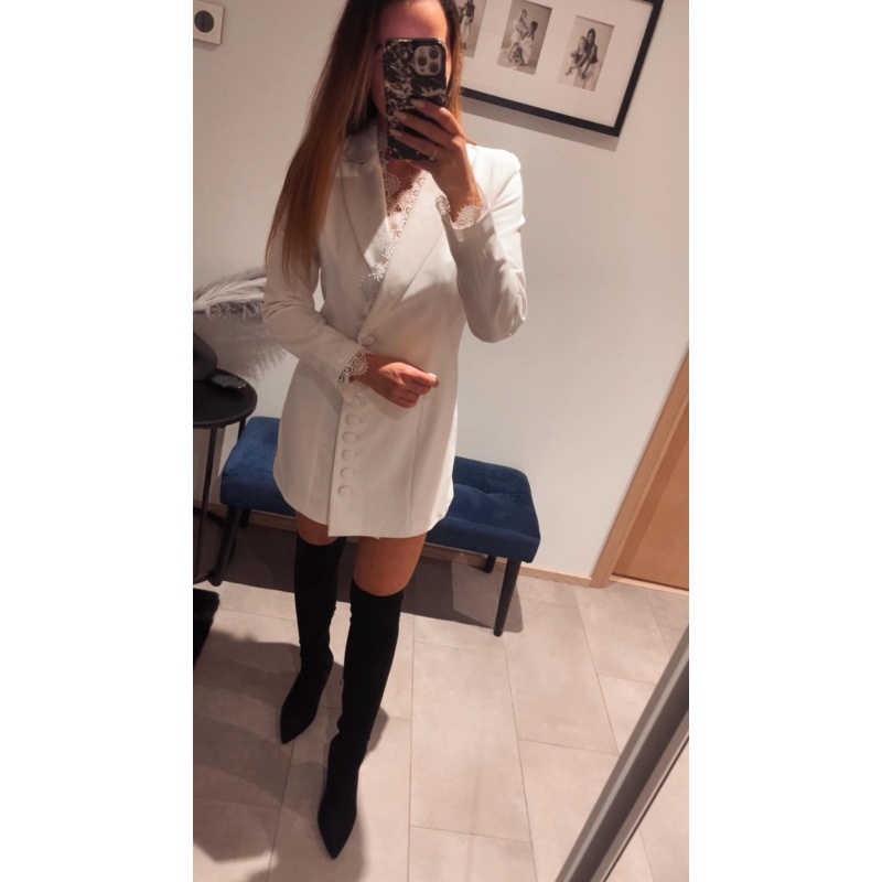 Valge pitsiga pintsakkleit. Eest kinnitub nööpidega.( vöö ei kuulu kleidi juurde)