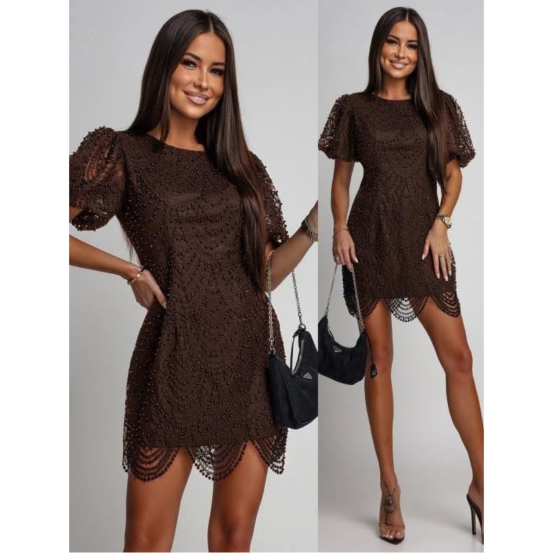 Pruun pärlitega lühike pidulik kleit.(Pärlid on ainult ees)