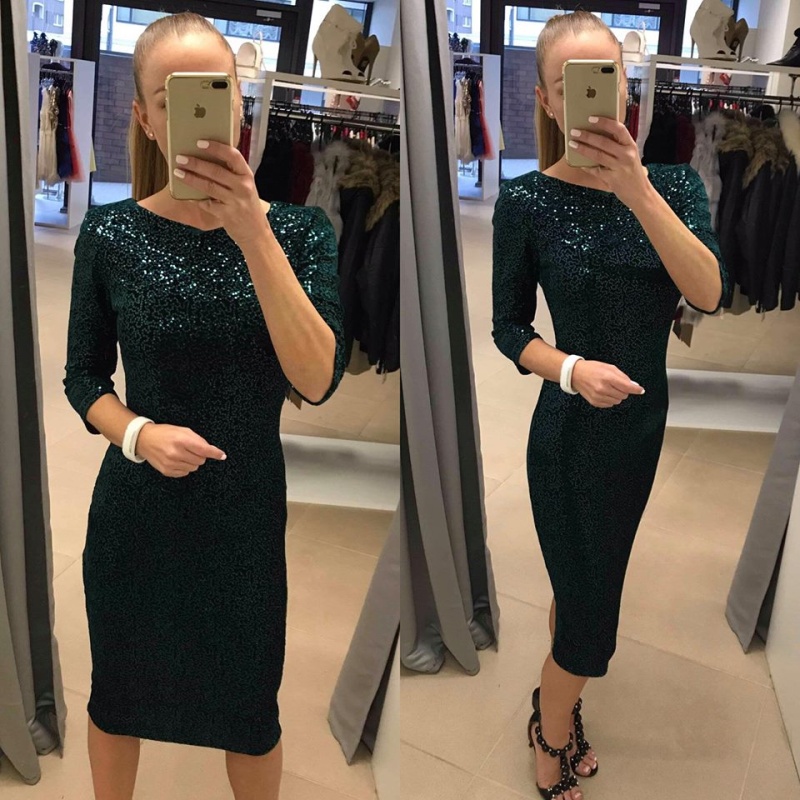 Roheline sametine glitter kleit