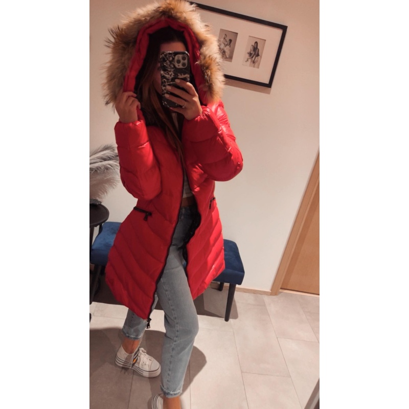 Punane naturaalse karvaga talvejope