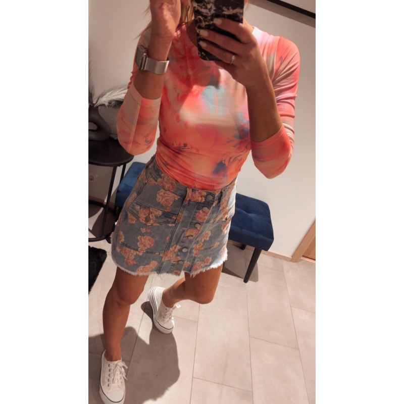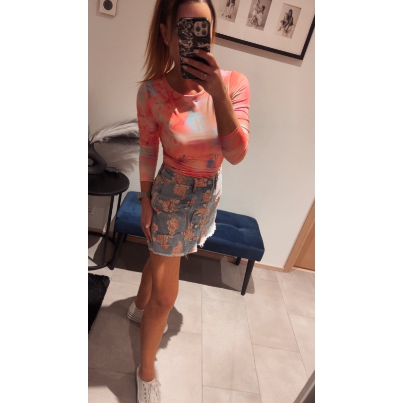 Ilus lilleline teksaseelik-püksid. Eest on seelik ja tagant püksid.